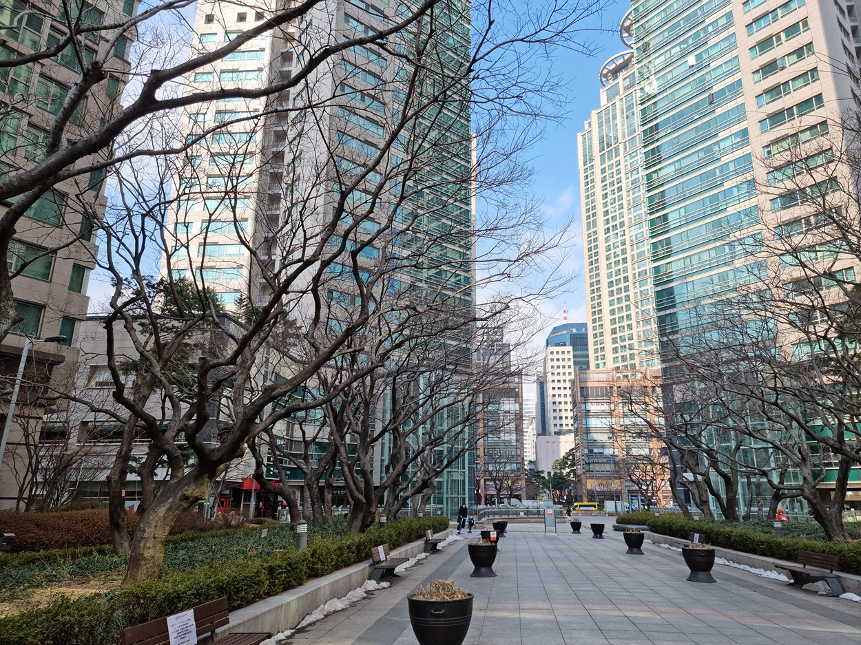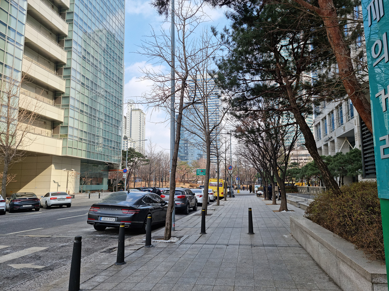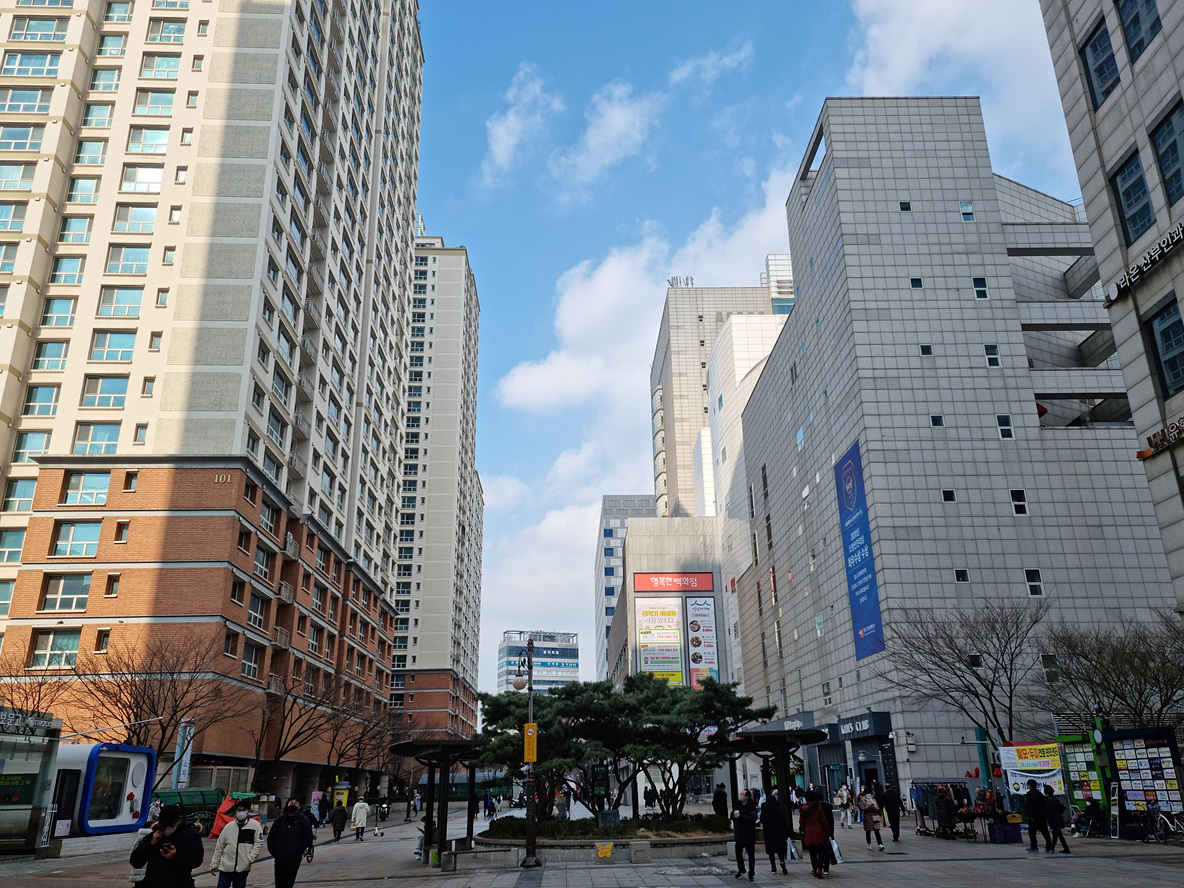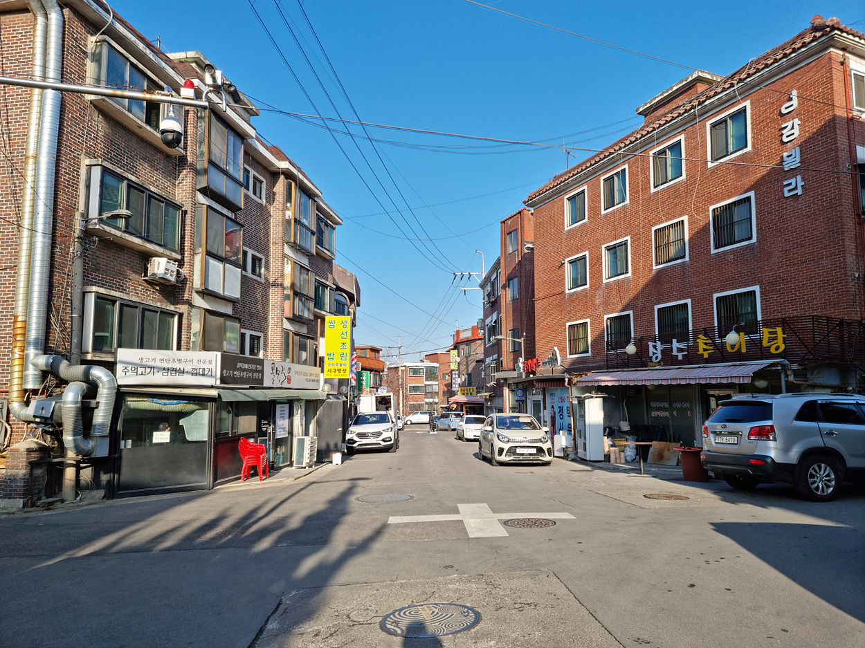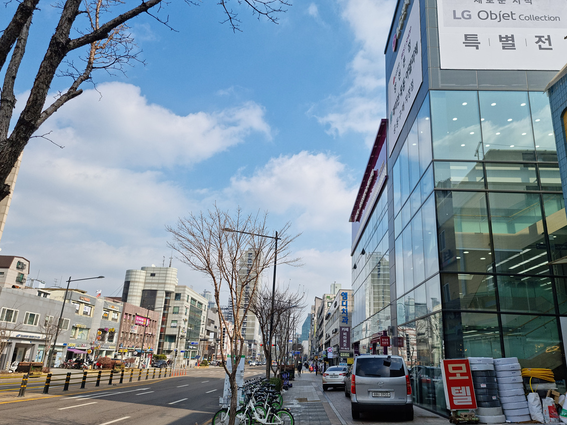 빌딩들 가운데길로 양천세무서 뒤로 간다, 오른쪽에 보이는 작은?건물이 양천세무서고