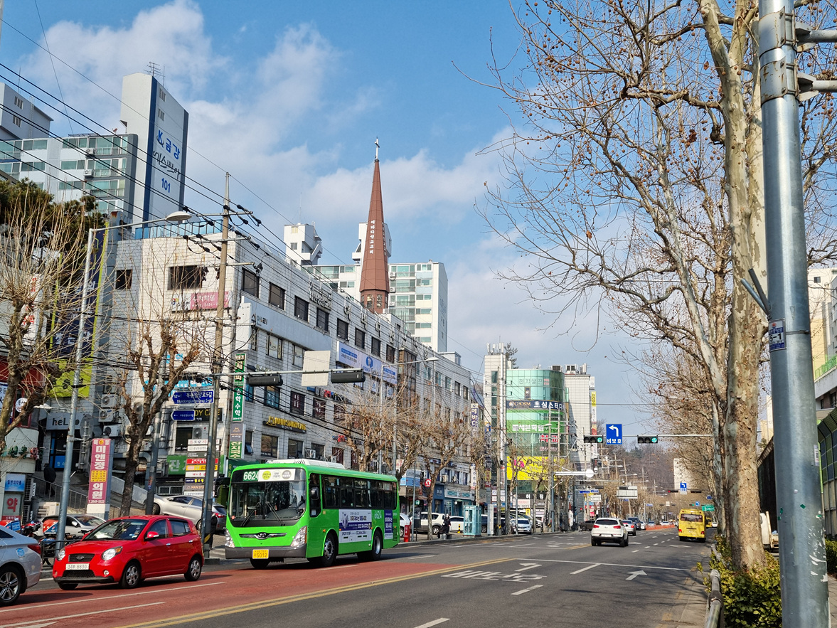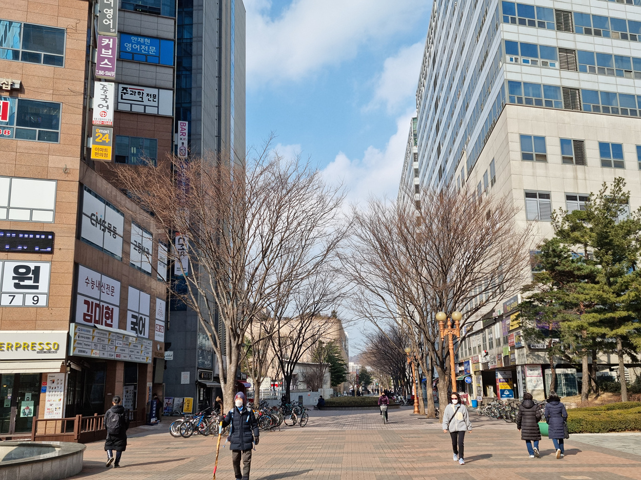 직진해 목동서로를 건너 양천경찰서와 양천구청 뒤 해와별의 거리로 가면된다,