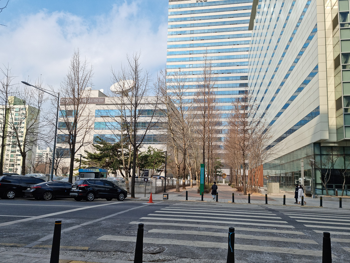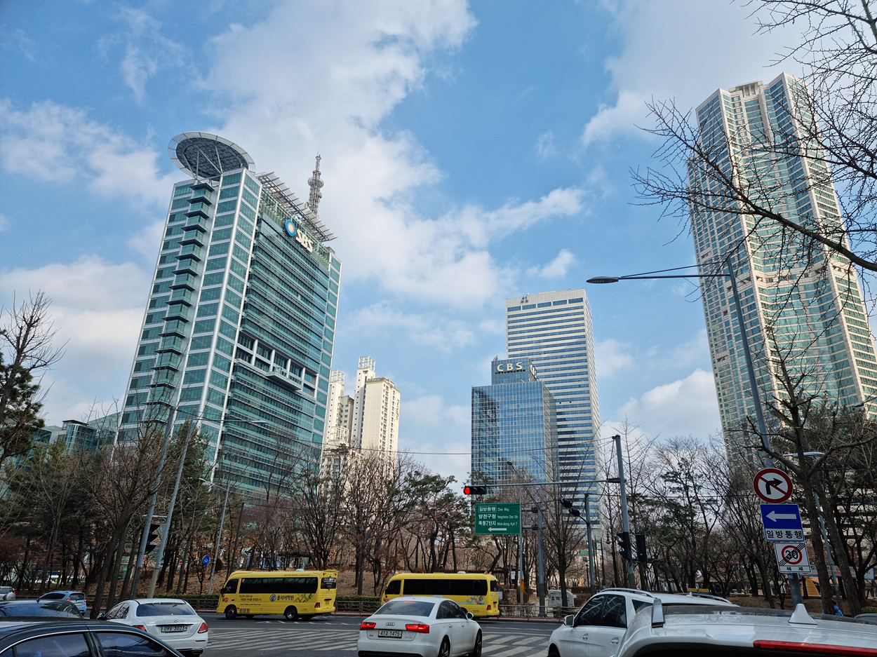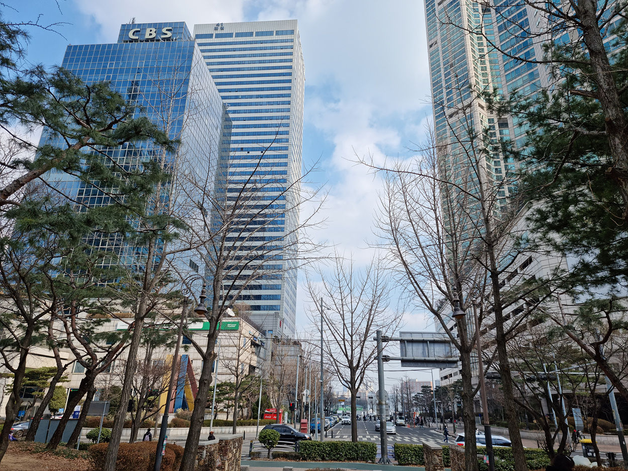 CBS뒤로 보이는 높은 건물은 현대41오피스텔 타워다