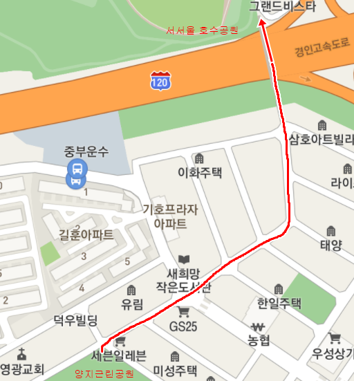 서서울호수공원에서 여기로 오다가 길을 잋어버리면 주민들에게