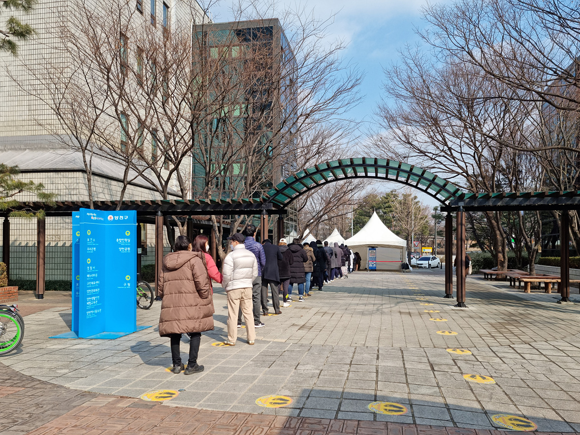 길게 줄을 서있는 사람들이 보인다, 양천보건소에서 코로나 검사를 받을려는
