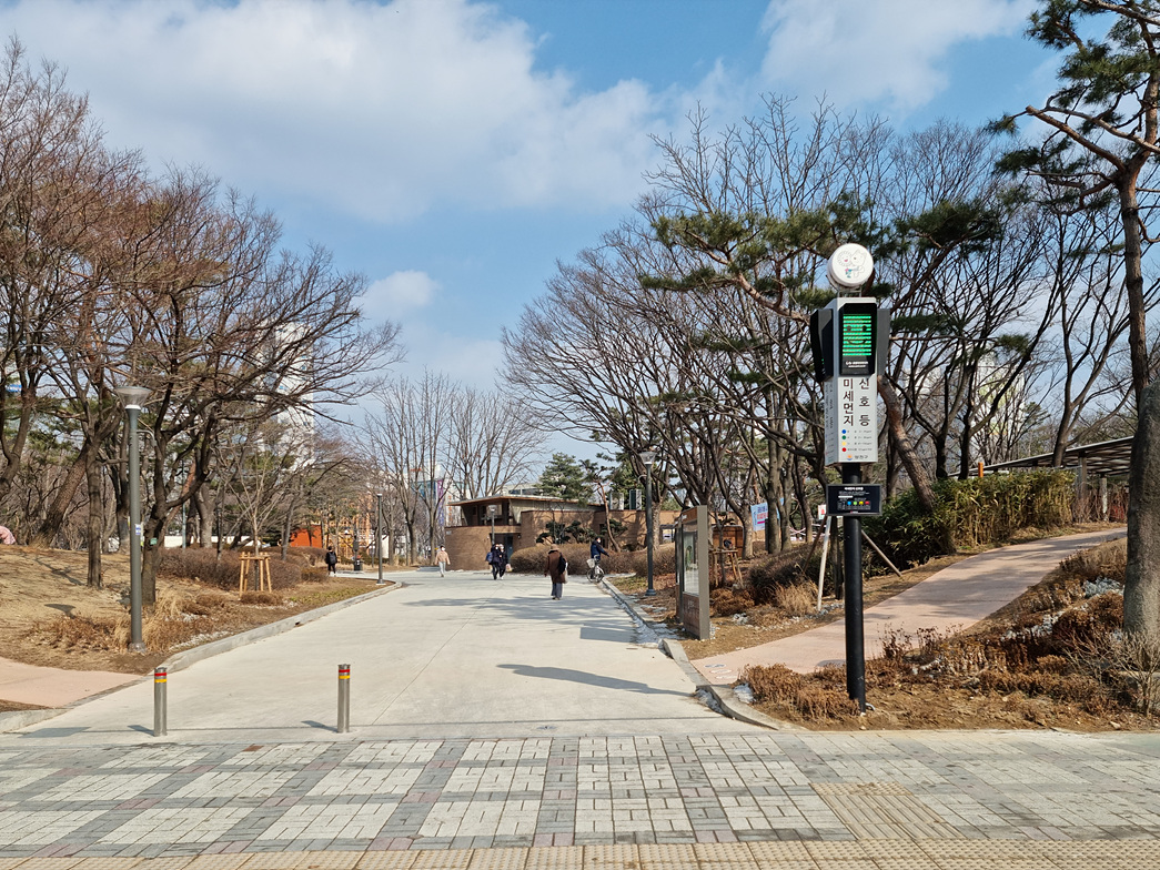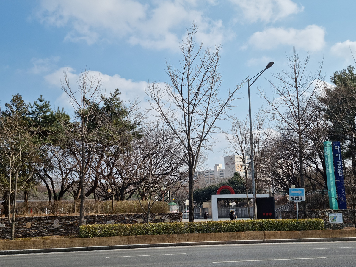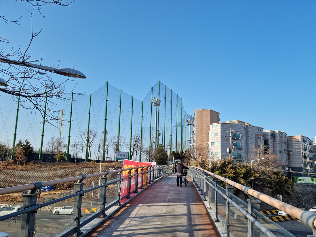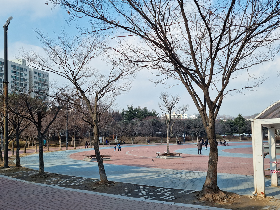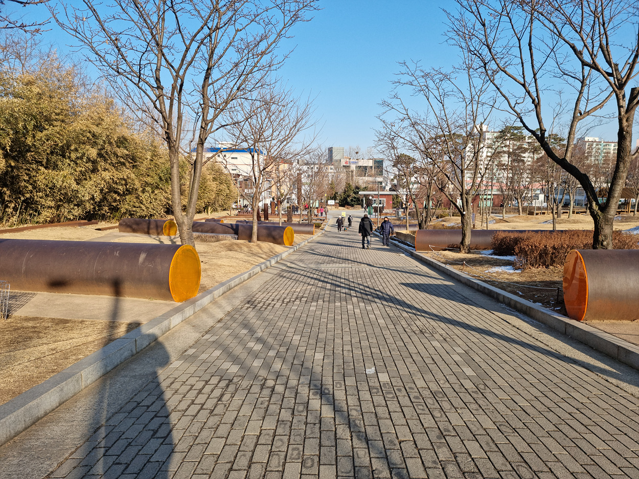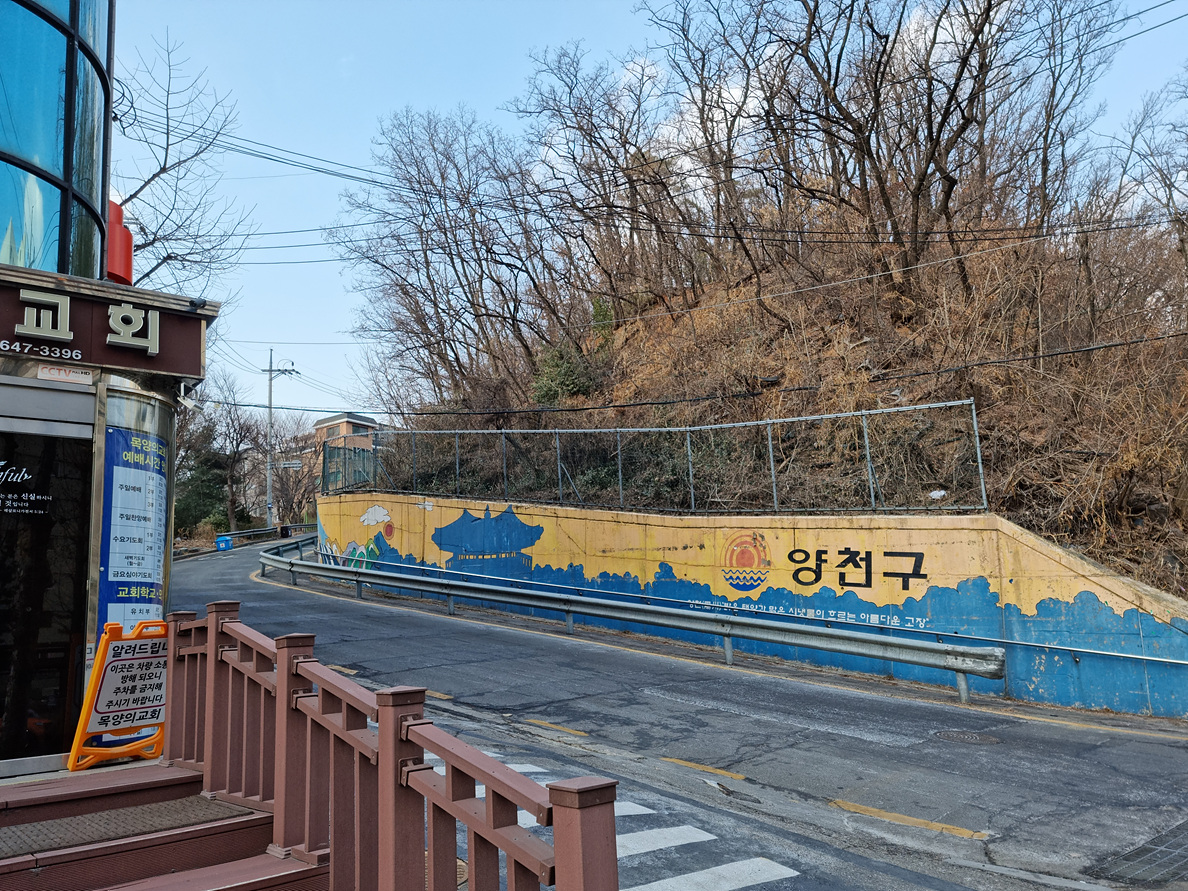 들어오는 도로를 건너 양천공원으로 들어간다,