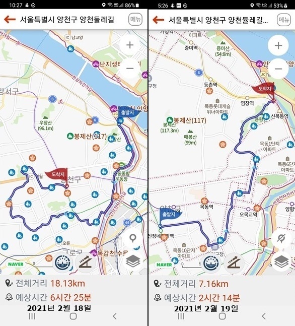 양천둘레길 도심형코스(2021년 2월 18일~19일) 본문
