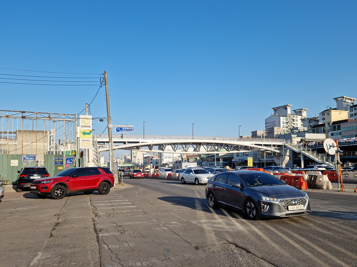 육교로 올라가면 건너편에 철구조물이 보이는 곳이
