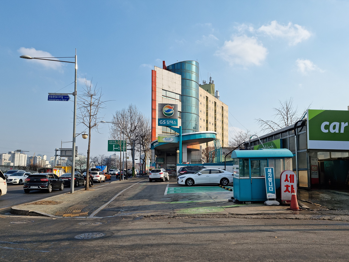 현대오일뱅크 주유소를 이어서 GS칼텍스 주유소가 있다,