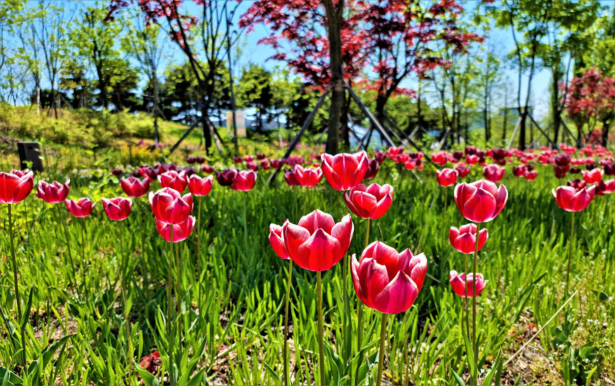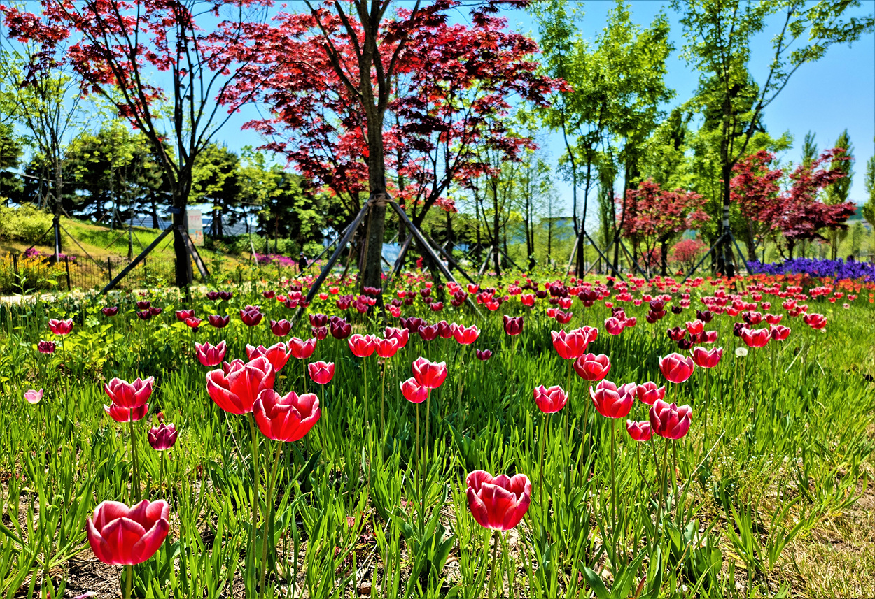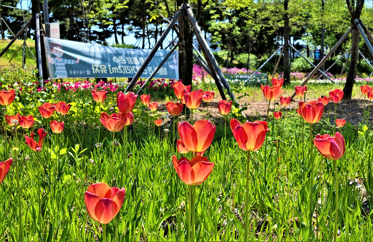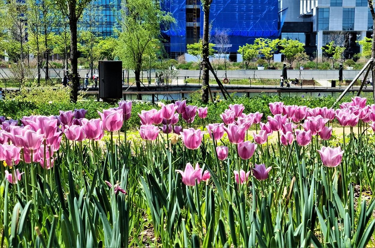 식물원호수 가운데 다리를 건너 온실방향으로 들어가면 식물원 야외에 심어저 있는 튤립길 꽃들이