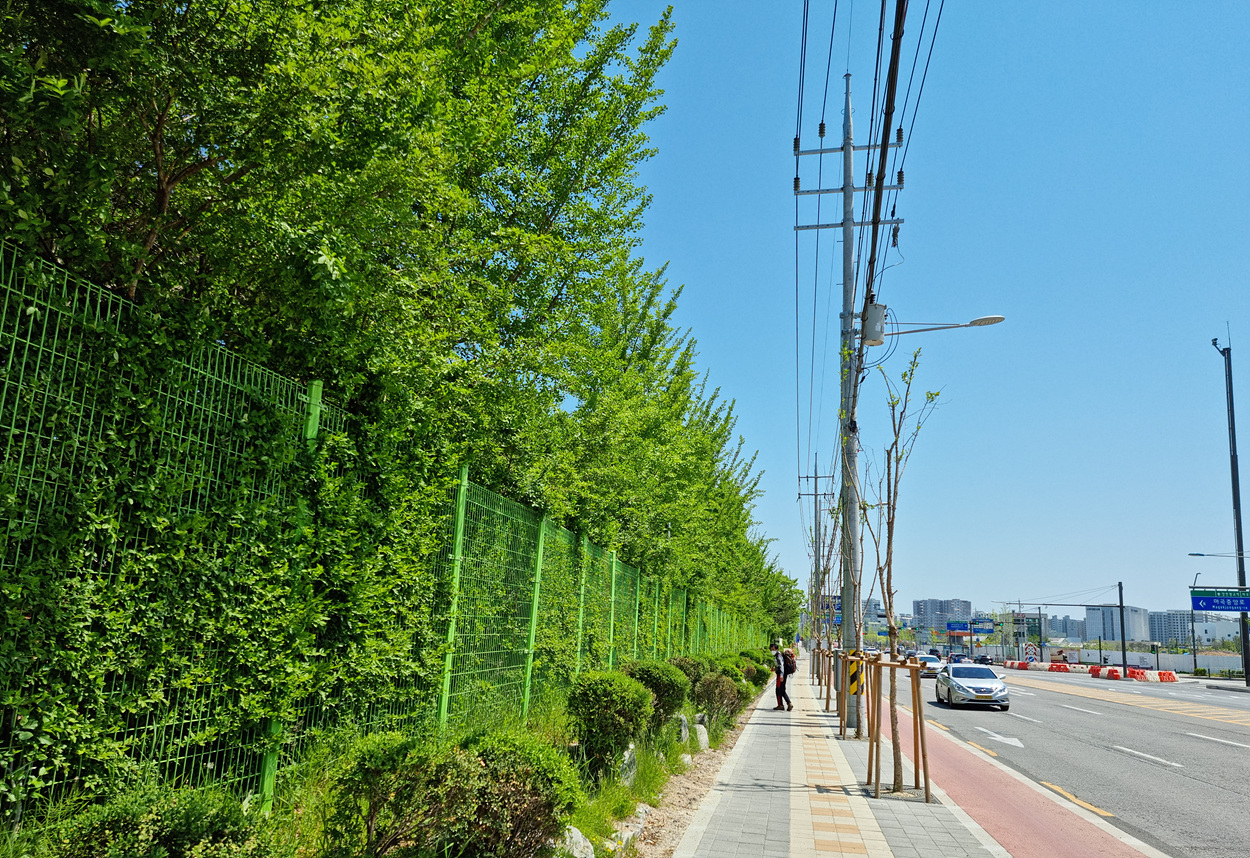 한줄로 길게 심어진 소나무 군락지를 따라가는 서남환경공원은 서남물재생센터 서쪽에 만들어 진 공원이다,