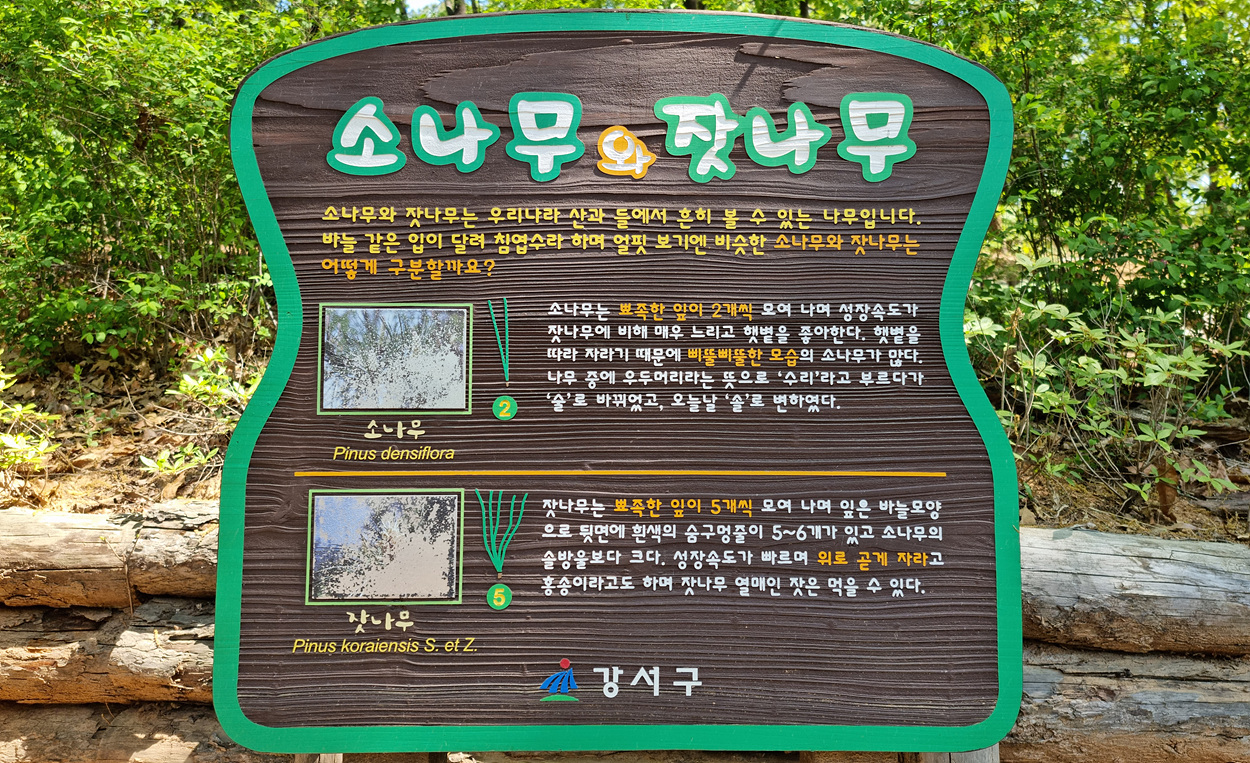 소나무와 잣나무 구분법까지 자세히 설명이 되여있는 안내판도 있다,