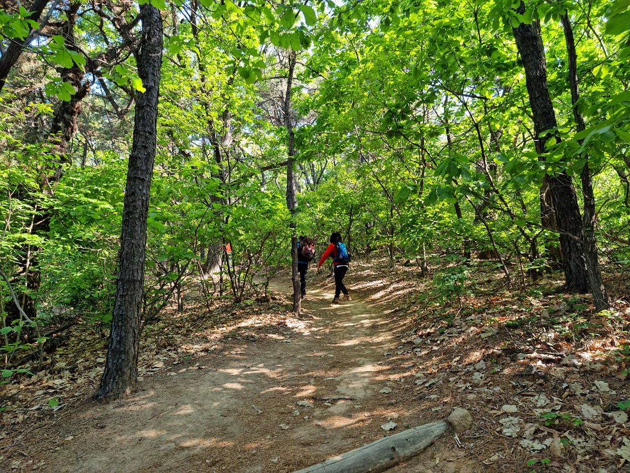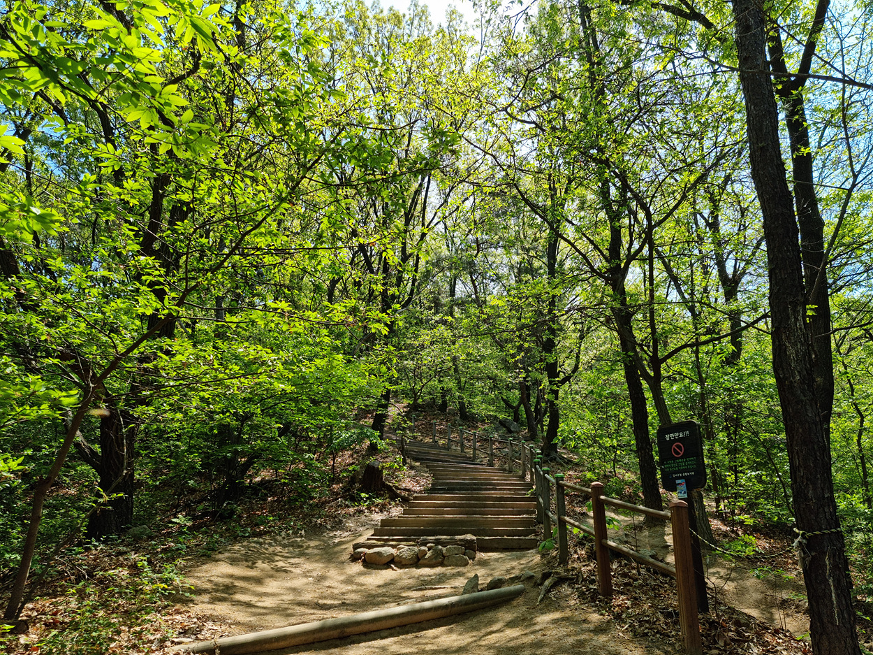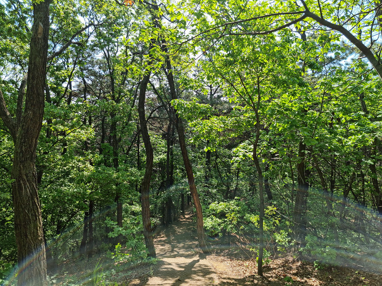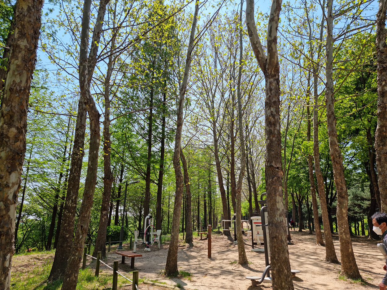 2021년 4월 25일 09시 햇살이 뜨겁다, 개화산초입 숲이 뿜어 내는 연록의 색에 눈이부시다,