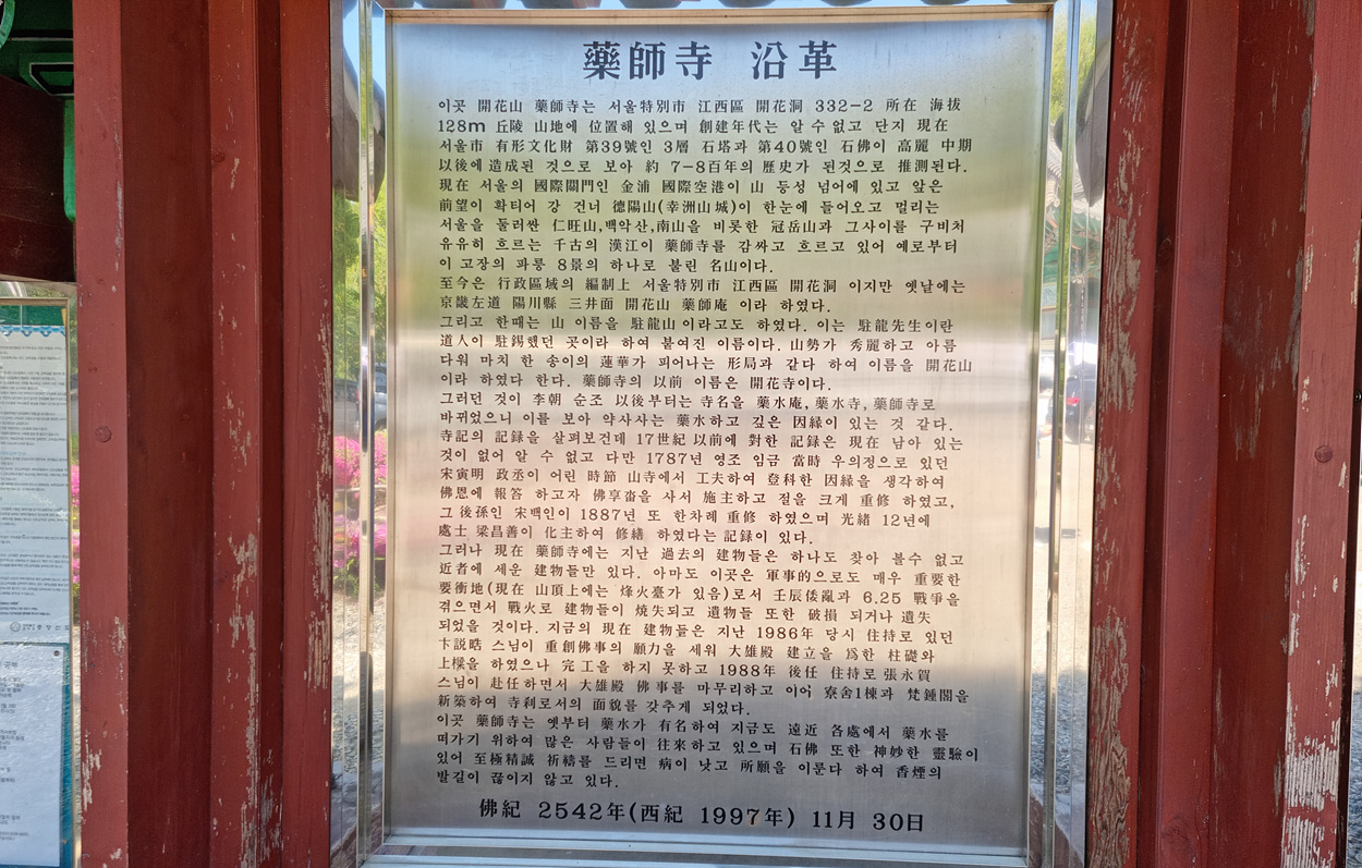약사사는 지하철 5호선 방화역에서 택시로 올 수도 있고 차량을 이용해 직접 약사사로 올 수도 있는 도심의 절이다,