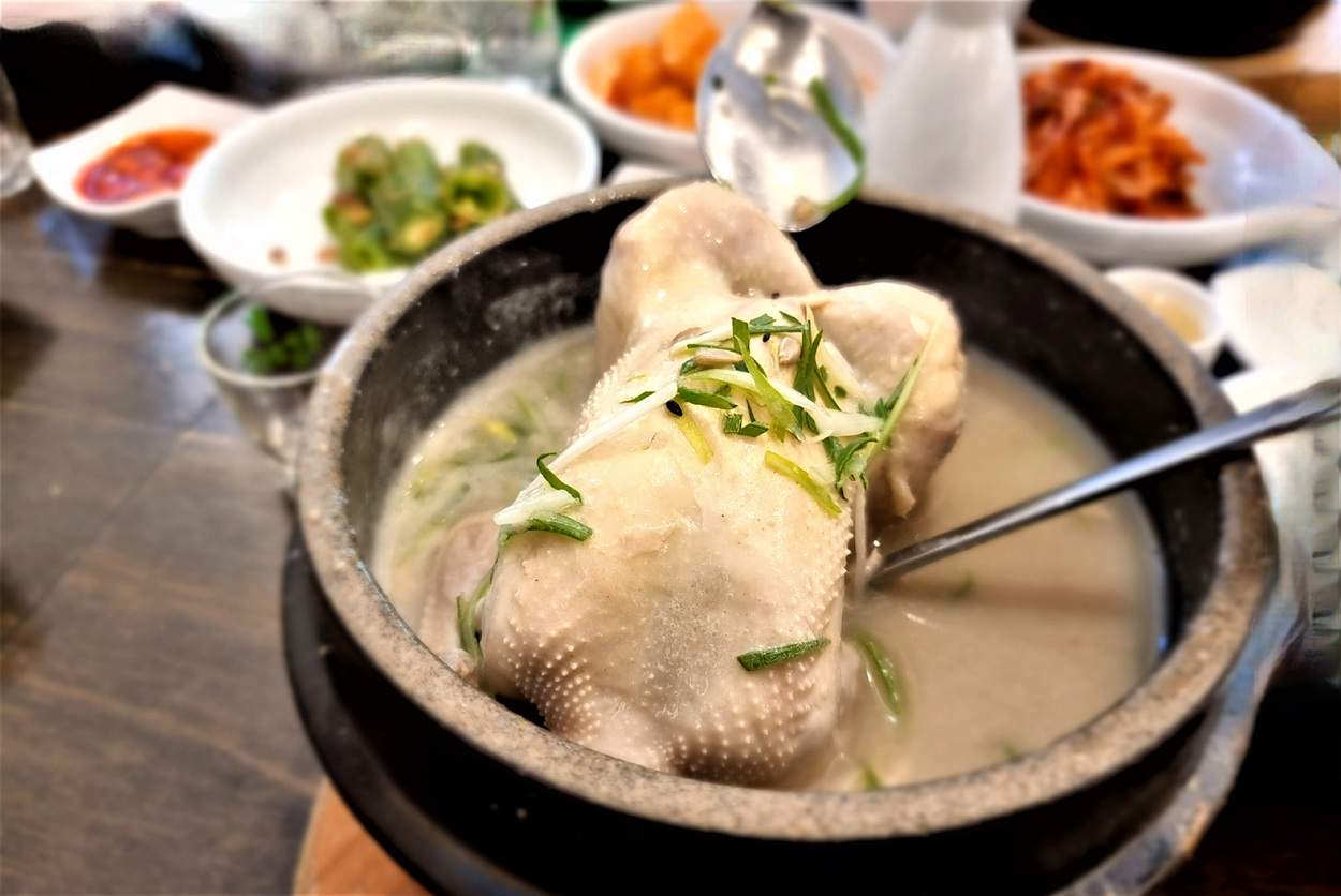 마곡나루역 입구에서 먼길을 걸어 이곳까지 온 이유는 발산삼계탕으로 점심을 하려고 해서다, 멀리 찾아왔고 순번을 받아 기다리는 시간도 20분 정도는 걸렸지만 밑 반찬은 깎두기와 김치, 마늘짱아치가 전부다,