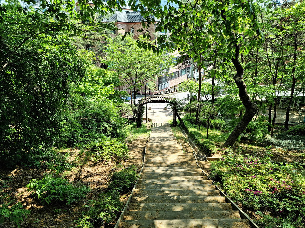 꿩고개공원 산책로를 따라 내려가면 마을이 보인다, 여기는 마곡서광아파트단지 인근이다,