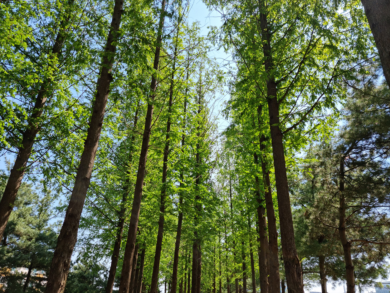 메타세쿼이아 숲이 아름답기때문일까, 메타세쿼이아 숲에서 처다보는 하늘까지 아름답게 보인다,