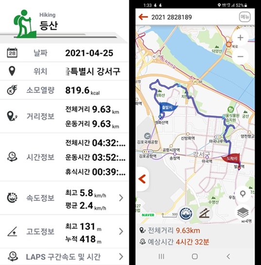 개화산 둘레길 코스에 얽매이지 않고 자유롭게 돌아 본 강서지역 일대, 거리 측정 기록은 10km남짓이지만 중간에 앱이 멈추어서 일부거리가 누락이 되였지만 정확히 어느 정도인지는 알수없다,