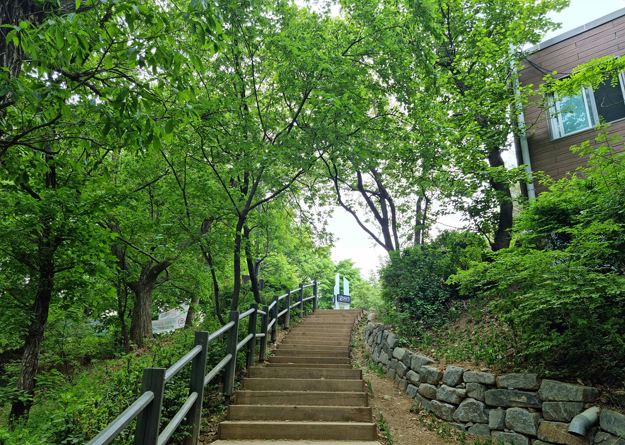 숲속놀이터등이 있고 인접마을 어디서든 들머리와 날머리가 연결되는 산이다,