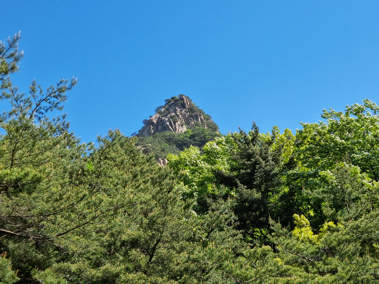 뽀죽한 얼굴을 보여주는 향로봉이 보인다,