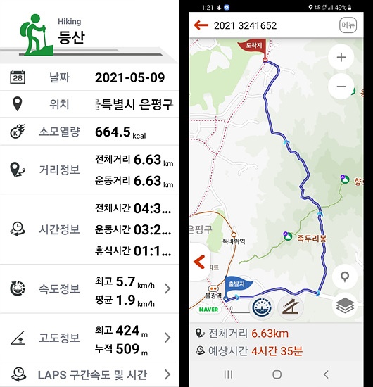 기록은 6,6km이지만 중간 중간에 앱이 끊어저 재부팅을