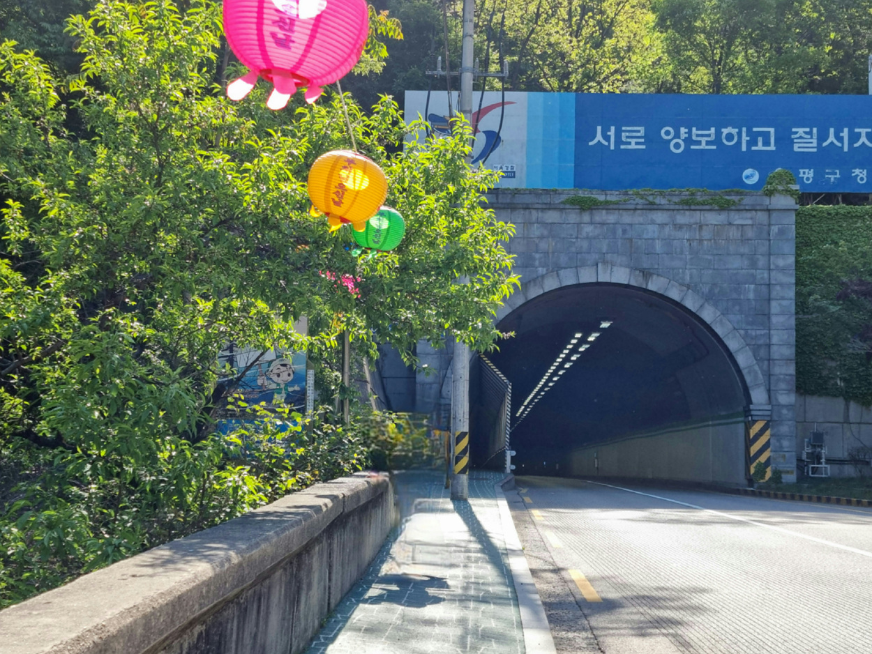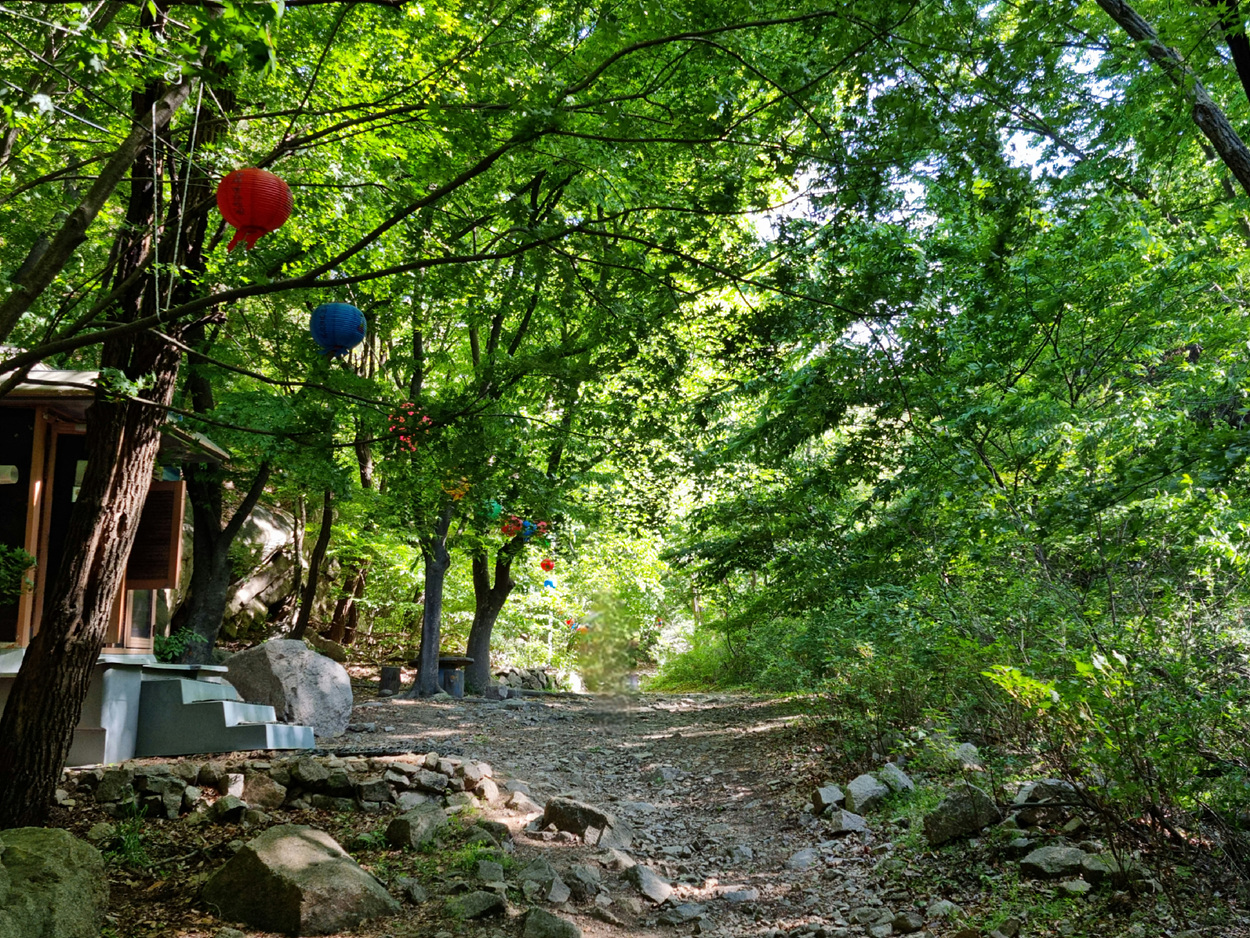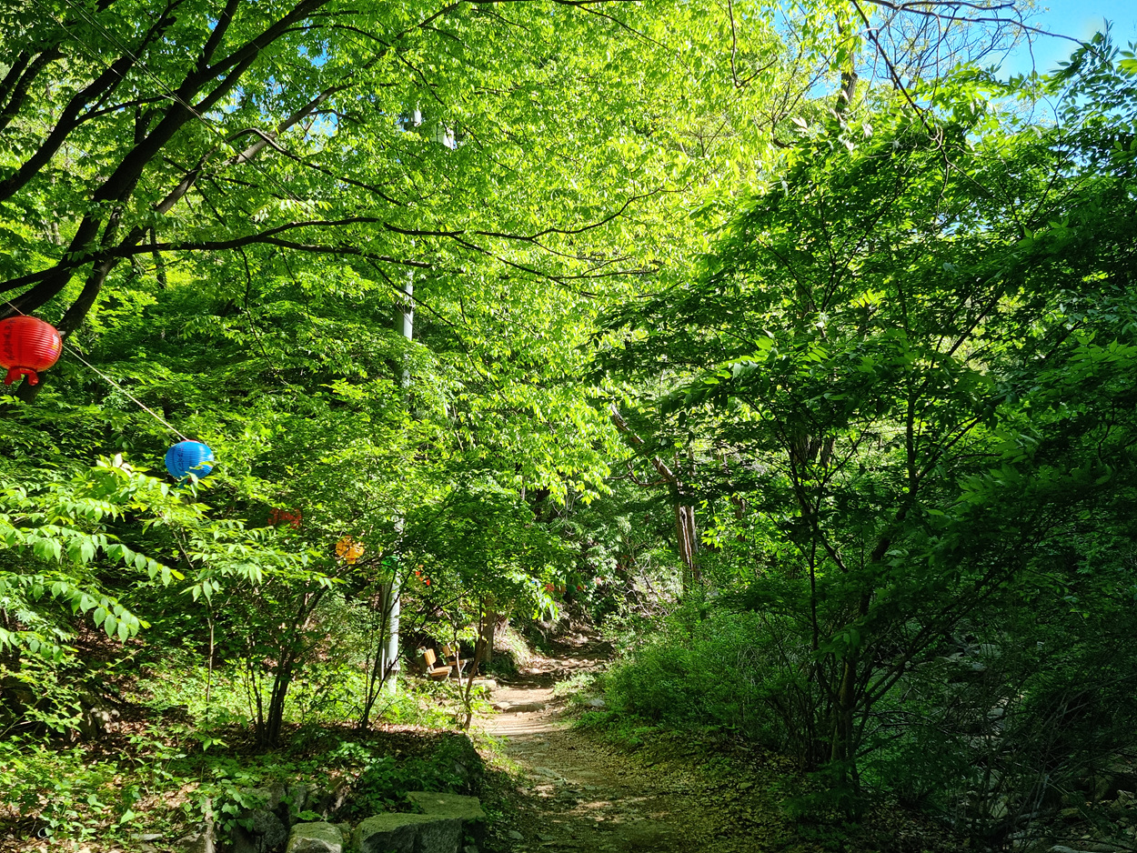 구기터널에서 연등을 따라 약 600여m정도를 올라가면 각황사와