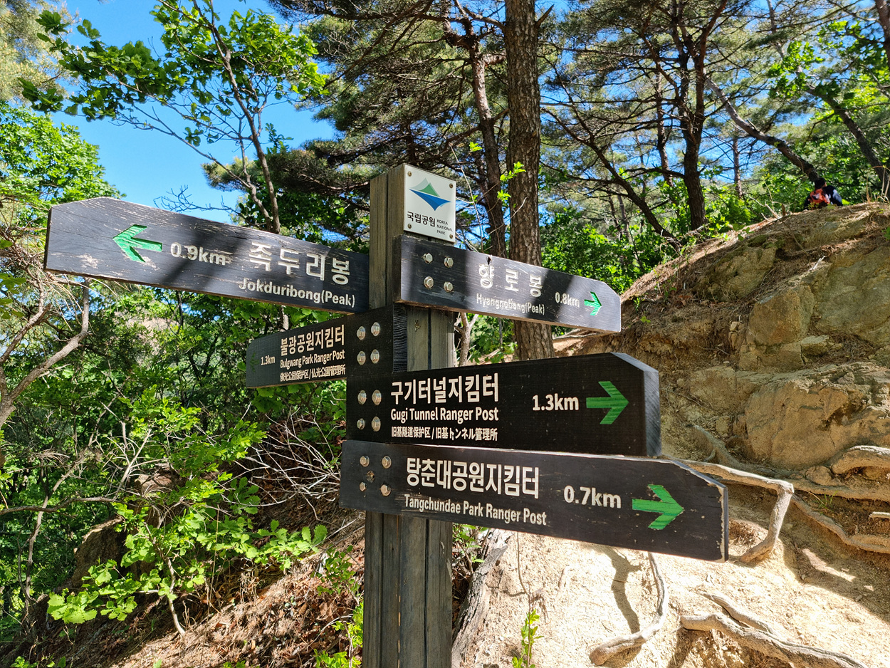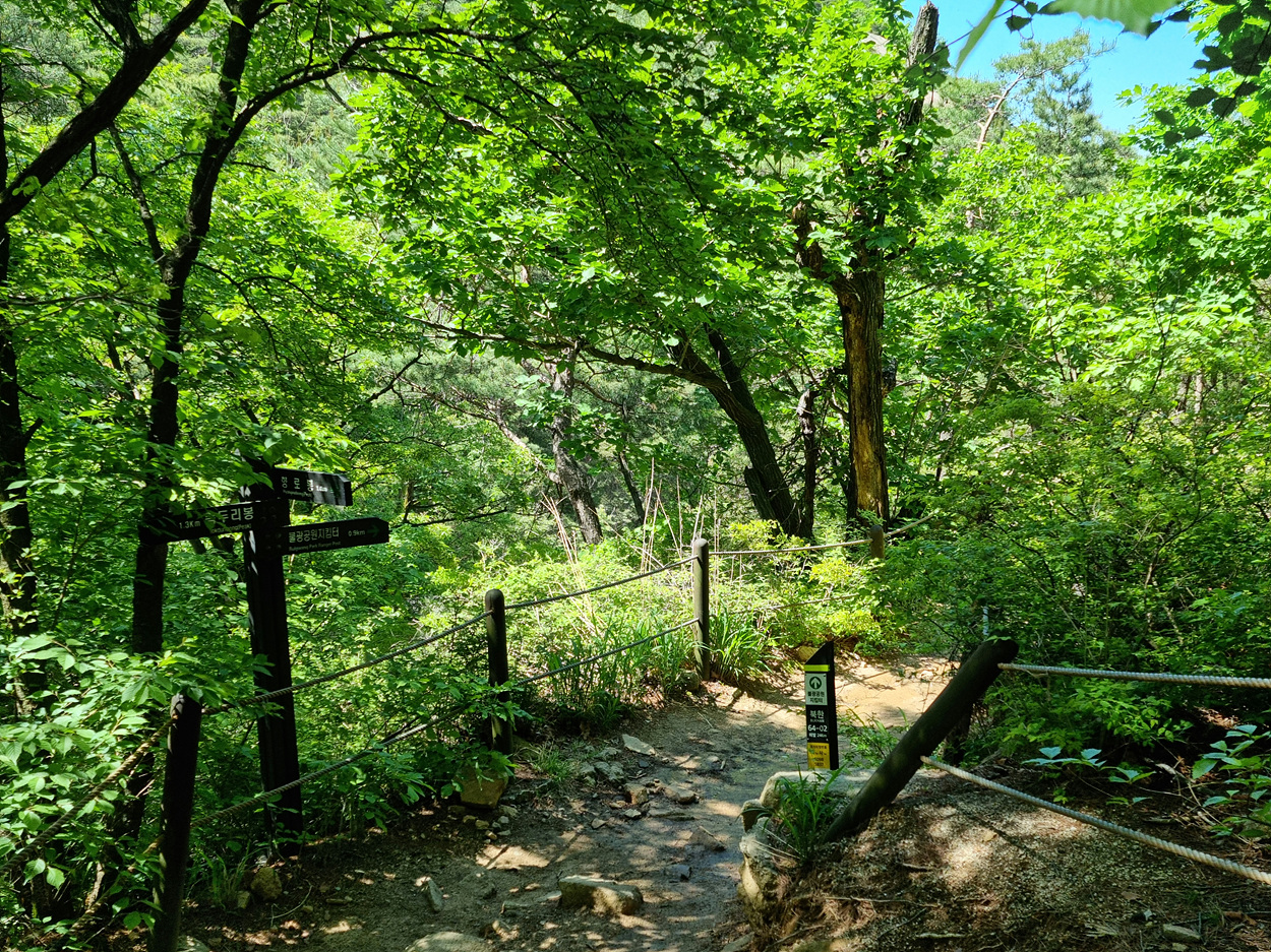 향로봉으로 가는 길로 나누어지는 갈림길이 있다, 여기서는 향로봉방향으로 가야한다,