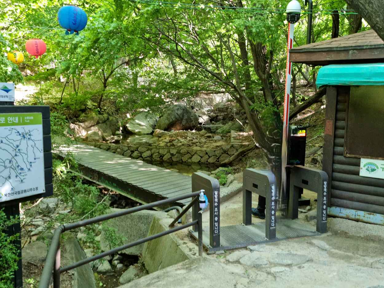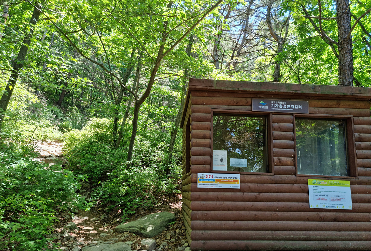 북한산구기터널입구 분기점 지킴터가있고 초소 앞은 구기터널계곡이다,