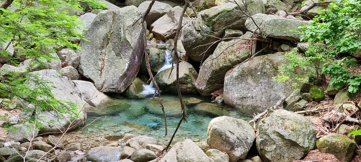 삼천사 계곡으로 흐르는 물은