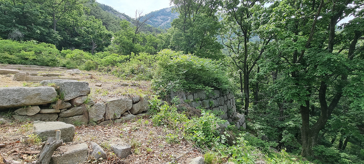 삼천사지 발굴시 계곡에서 올라오는 계단부가 심하게 붕괴되였어나