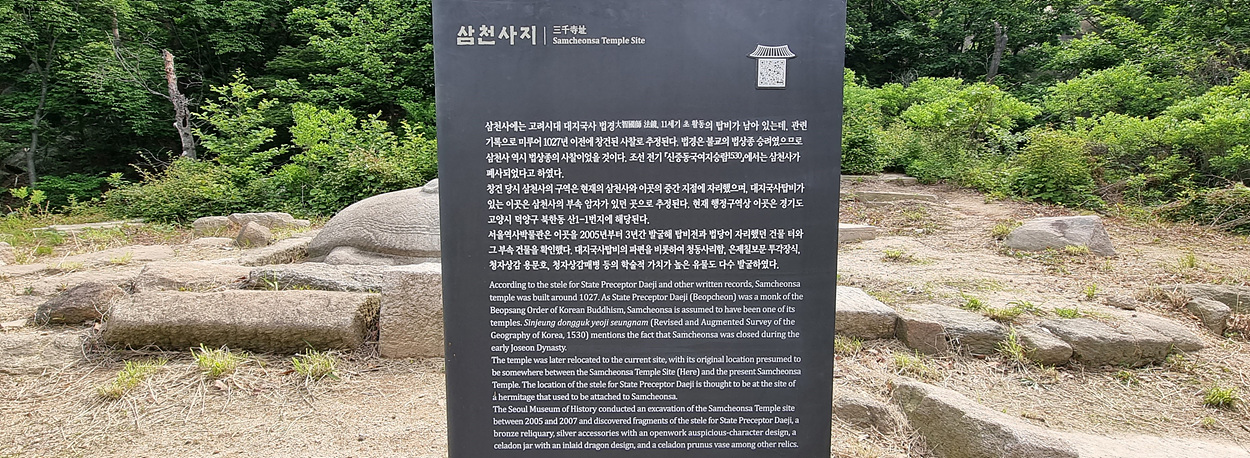 의상능선 증취봉(甑炊峰) 서쪽자락에 넒게 자리했던 삼천사는 고려때 창건된
