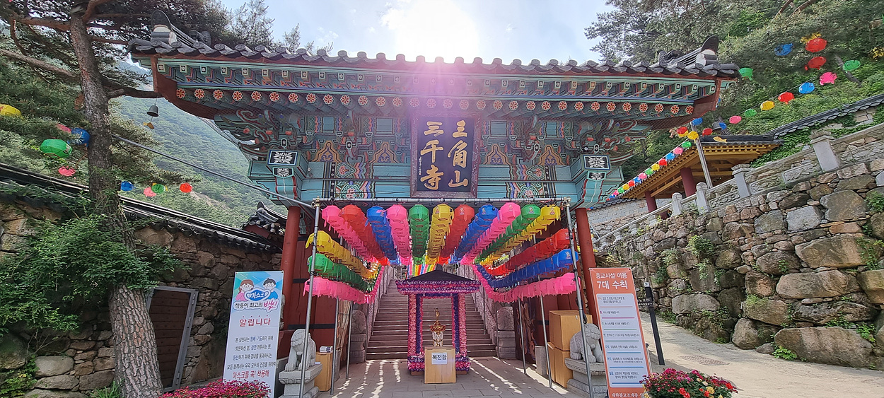 삼천사 일주문으로 들어간다