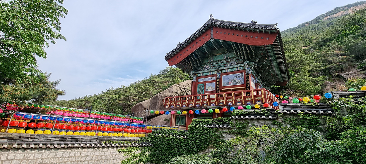 대웅전으로 이어지는 길에도 빼곡히 연등이 걸려있다,