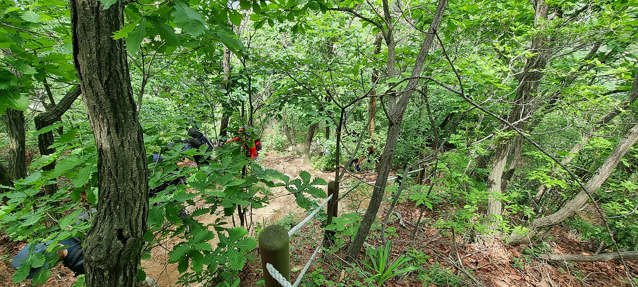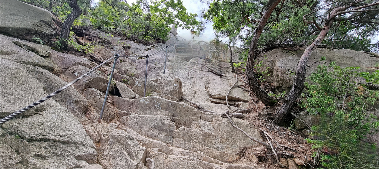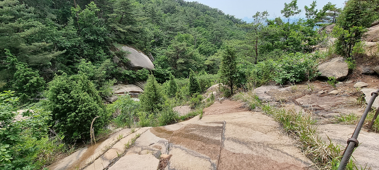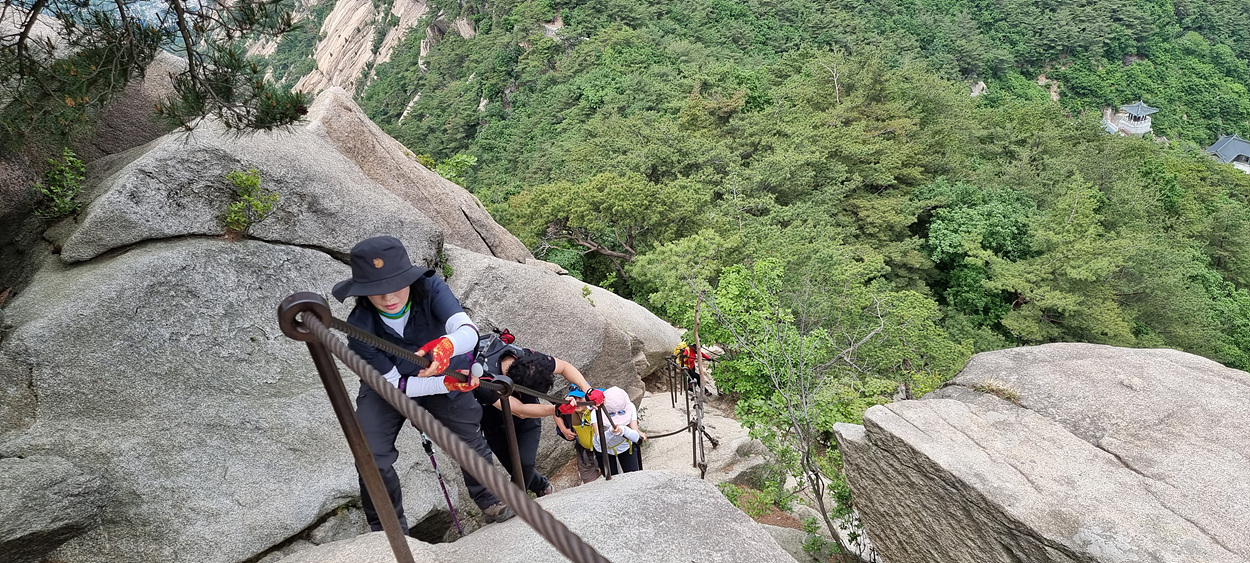 오히려 올라오는 길은 쇠줄만 잘 잡고 올라오면 되지만 내려가는 길이 더 어렵다,