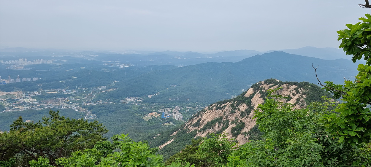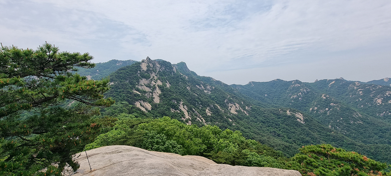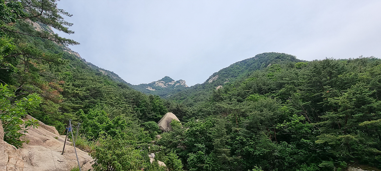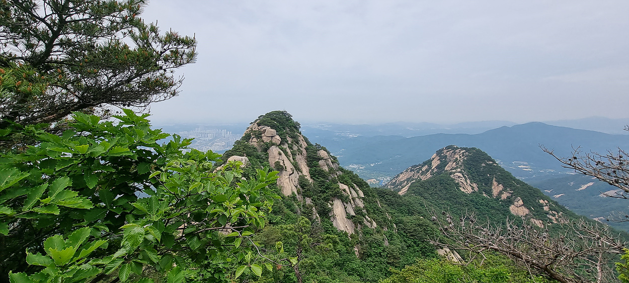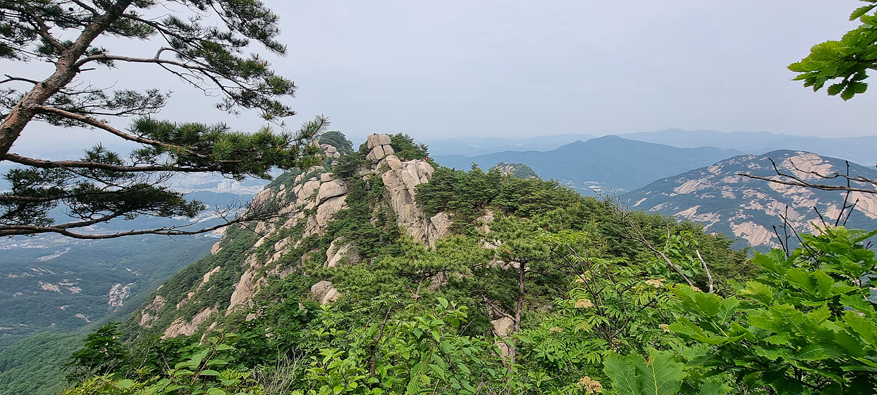 그 다음에 있는 염초봉의 우람한 산세와 그 뒤로 멀리는 도봉산과