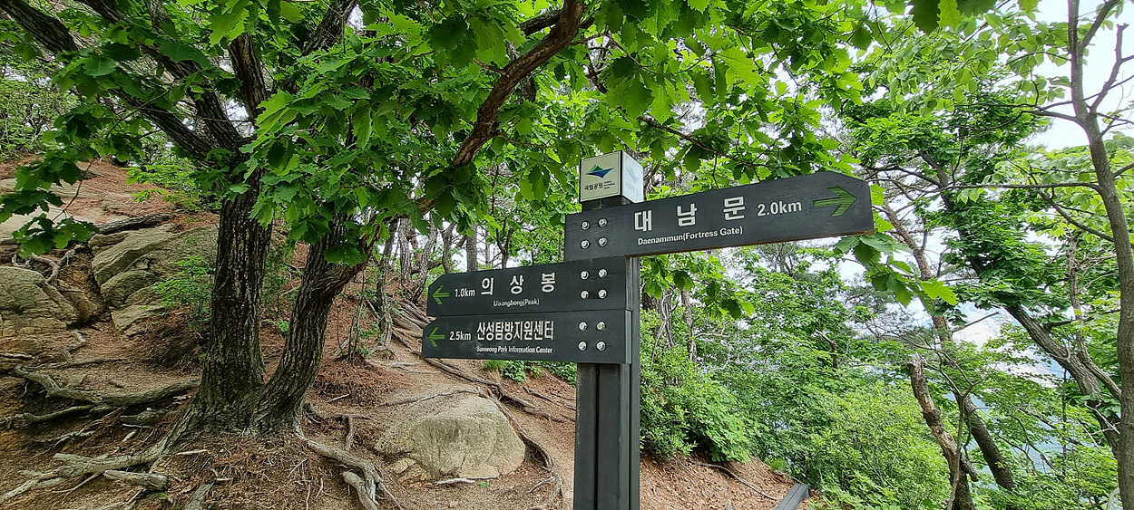나한봉, 삼원봉, 청수동암문을 지나 대남문까지는 1,5km이고 왼쪽으로 의상능선을 따라