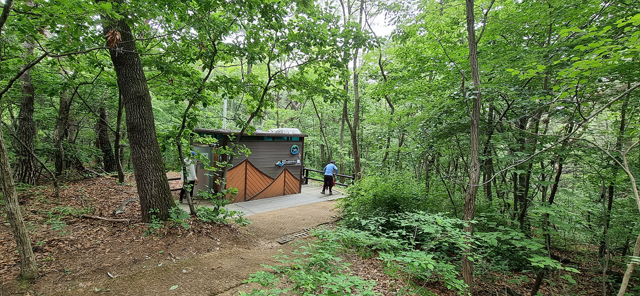 이길 끝 백화사입구 삼거리에는 국립공원 화장실도 있다,