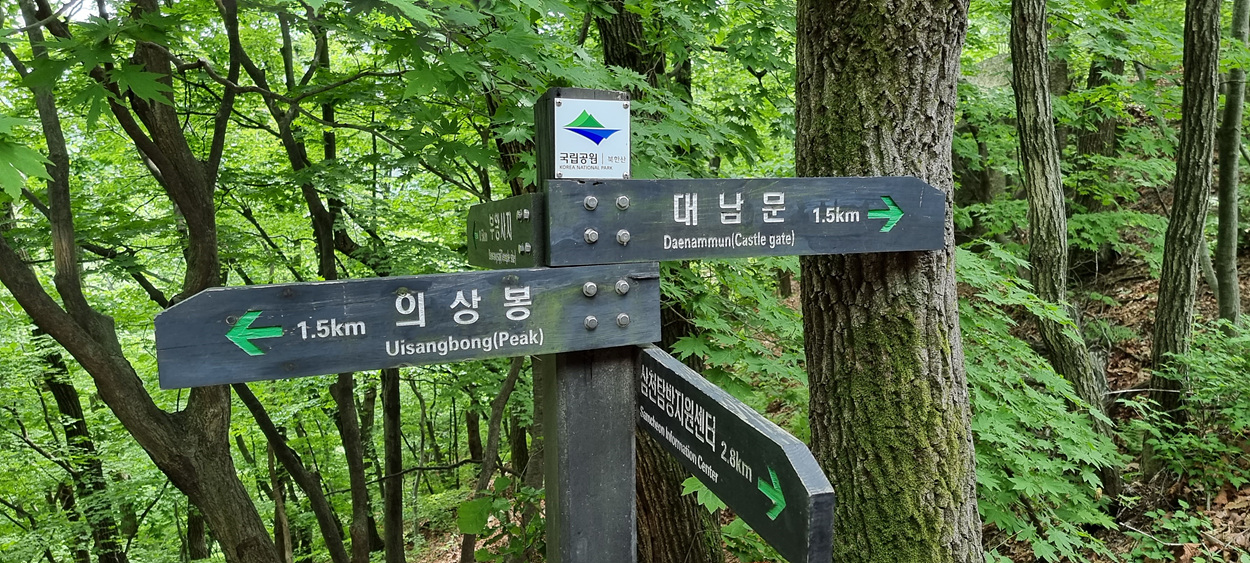 북한산은 백운대만 표지석이 있고 다른 봉은 모두 표지목이다,