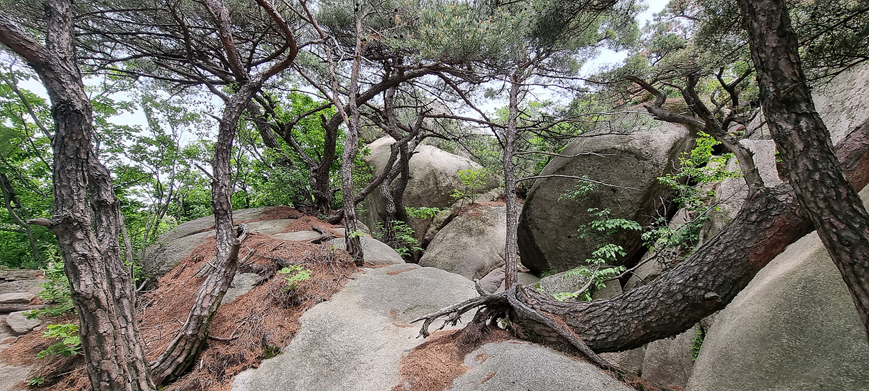 암반 틈에서 자라는 소나무들이 보면 볼수록 아름답다,