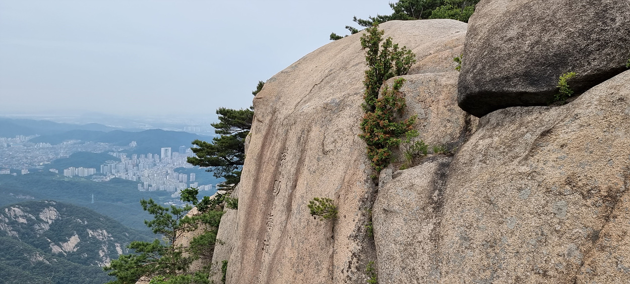북한산 용출봉과 용혈봉 사이 절벽에 새긴 紫明海印臺(자명해인대).