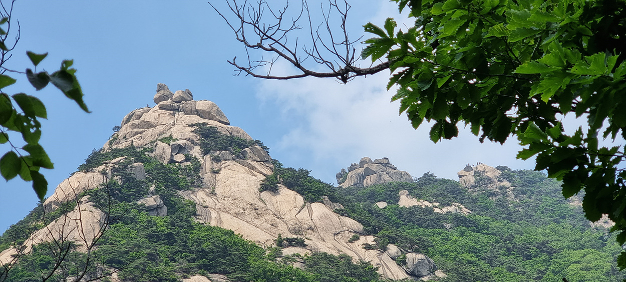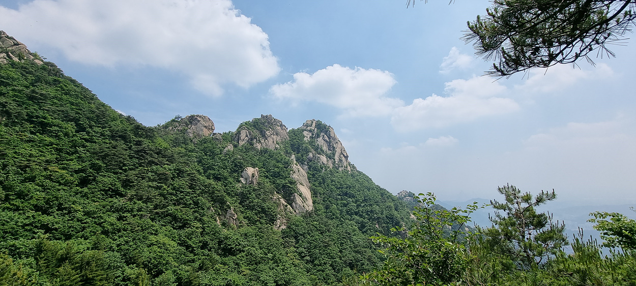 깔닥고개에서 보이는 문수봉 앞 뚜꺼비 바위다,