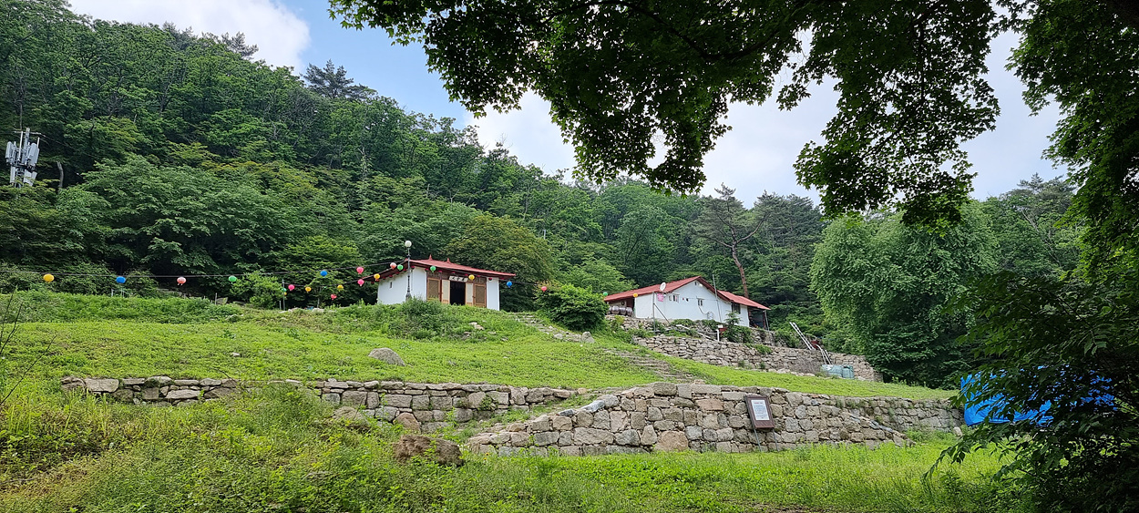 인해 무너진 후 폐허가 되였다가 2012년 대웅전과 요사채를 복원했다
