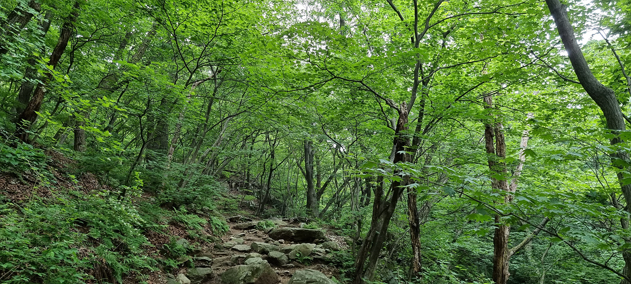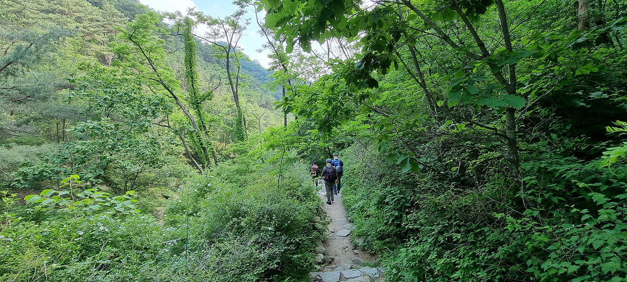 내림길은 보통 걸음으로 약 2시간 정도는 걸리는 지루한 산길이다,