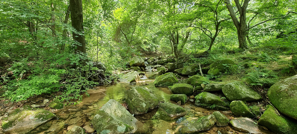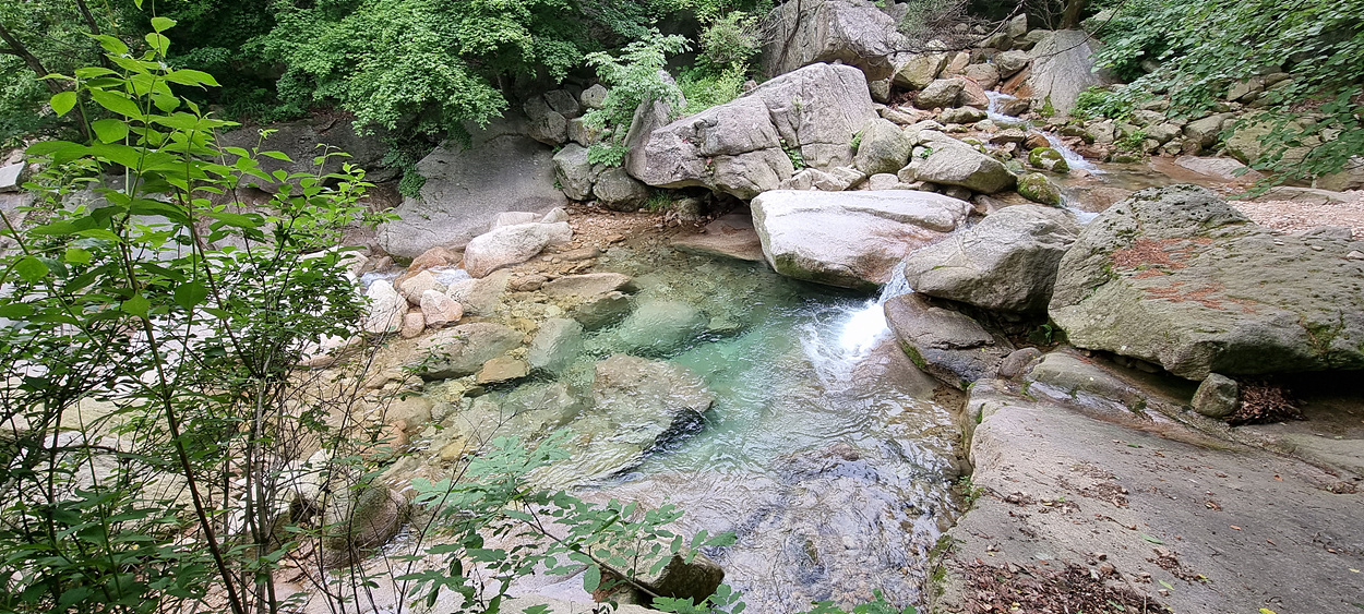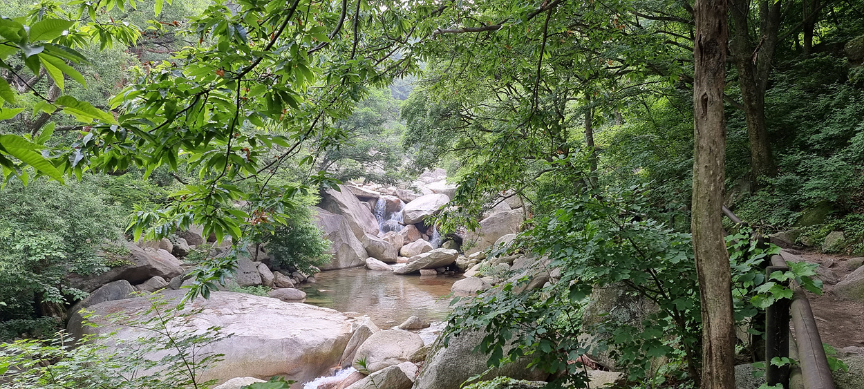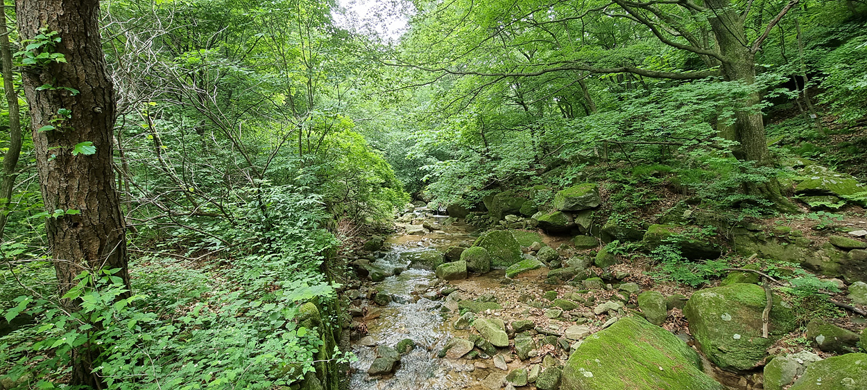 계곡을 흐르는 물은 여전히 맑고 깨끗하다,
