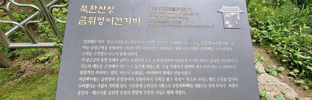 북한산성 금위영이건기비 도 있다,
