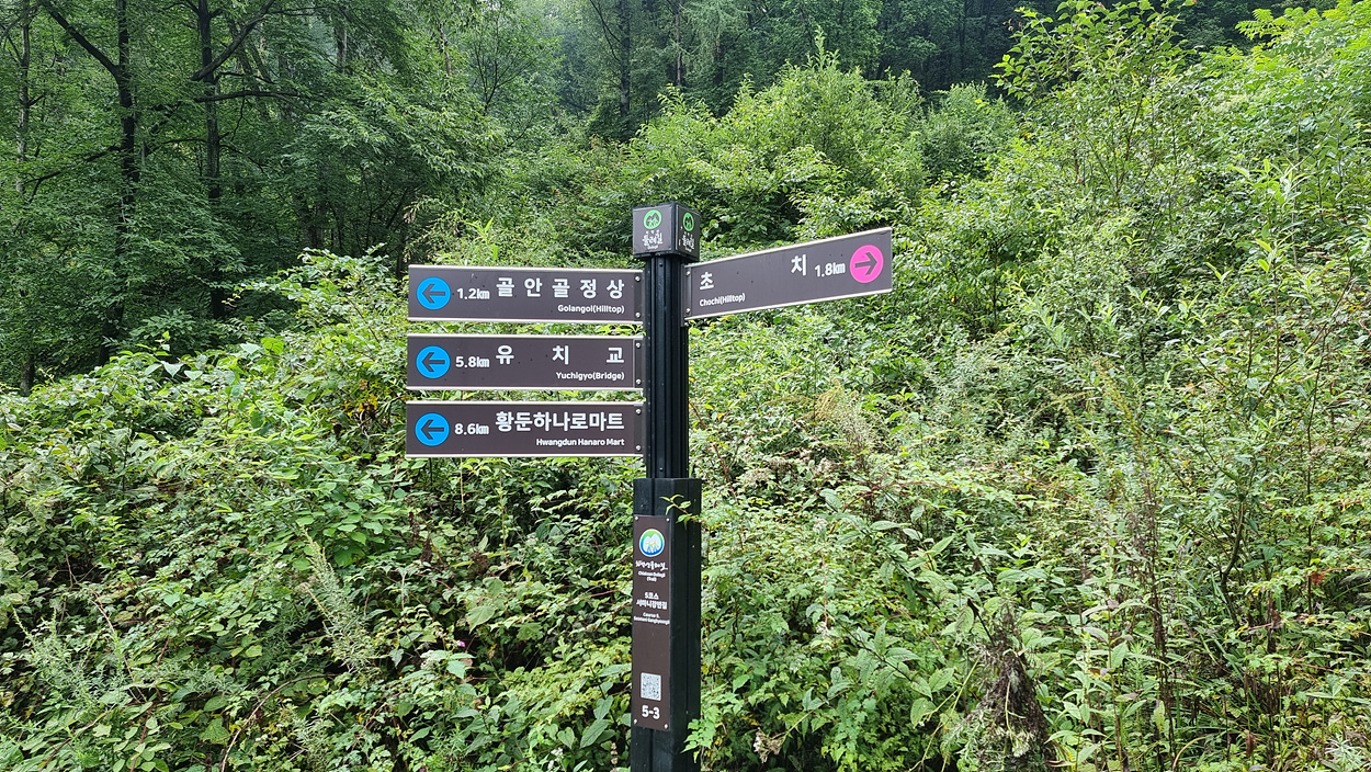 유치교까지는 5,8km가 남았다는 이정표도 있다,