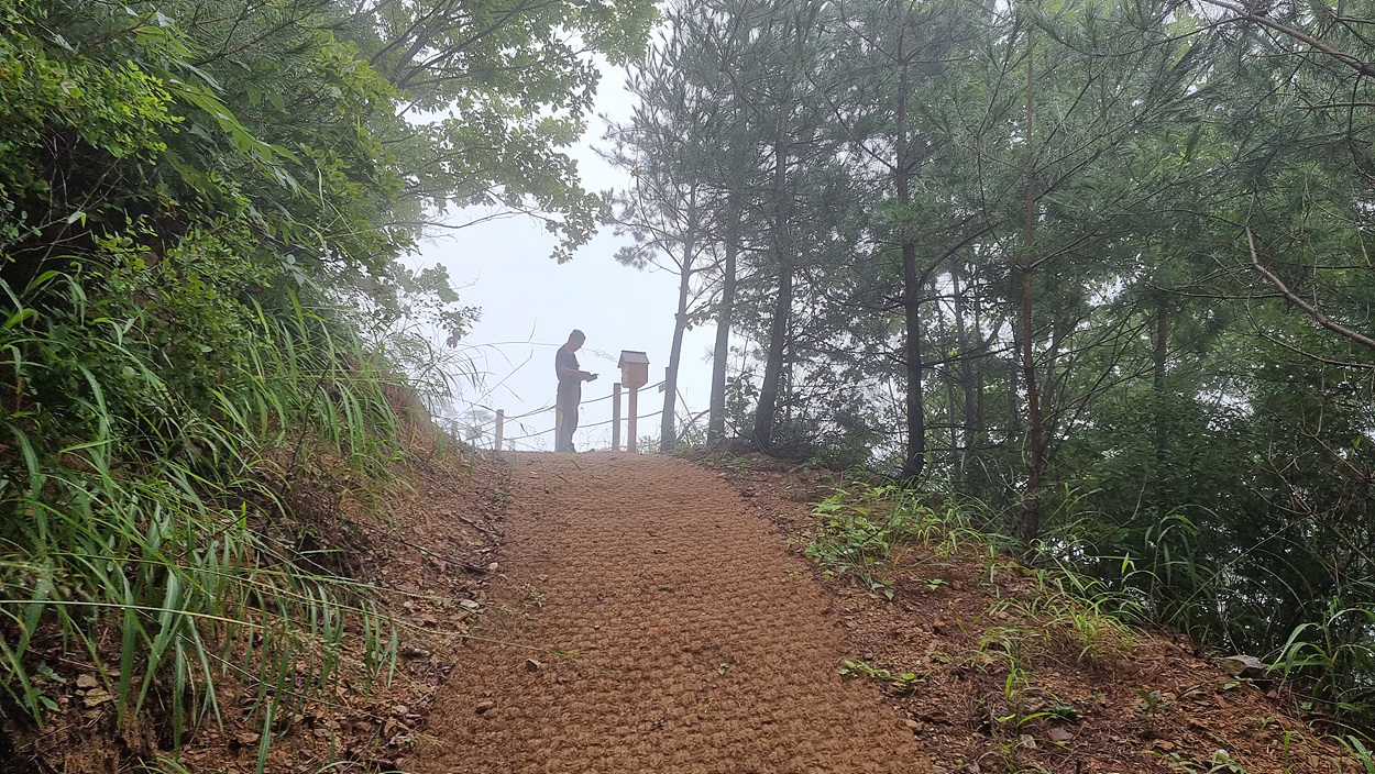 스템프 함을 뒤로하고 중골전망쉼터를 지나간다,