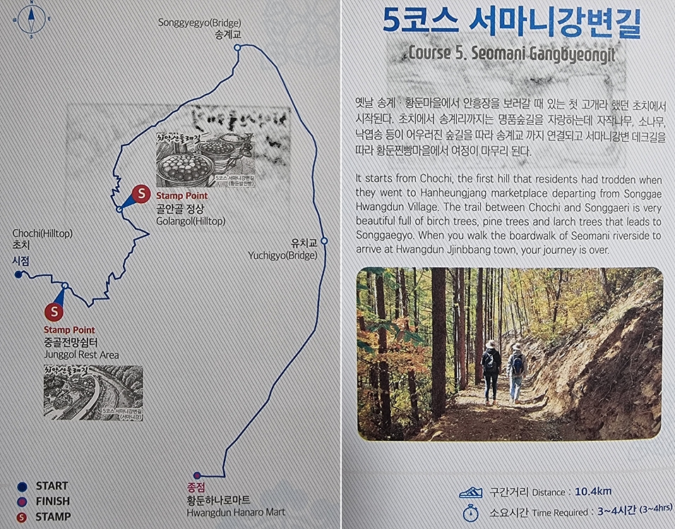 여기서 5코스 종점인 황둔하나로 마트는 8,1km 다,