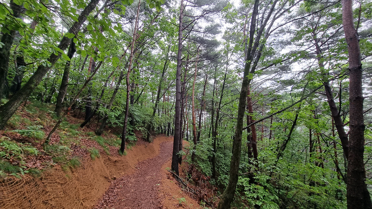 비를 머금은 숲은 솔향이 요동을 친다,