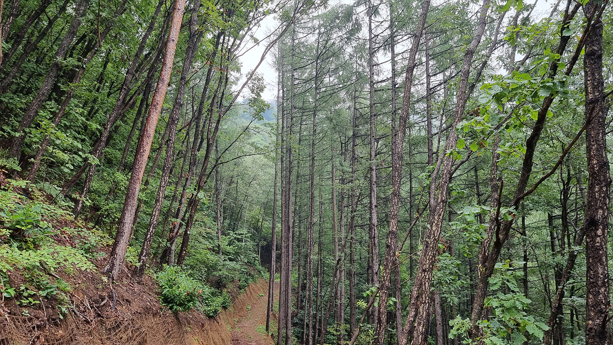 초치에서 송계리까지는 명품숲길을 자랑하는데 자작나무, 소나무,