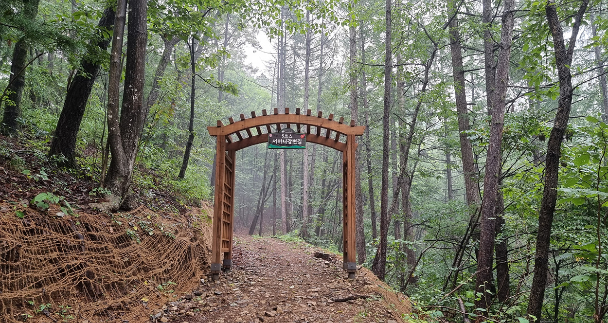 5코스 서마니강변길이라는 아치문을 지나서 들어간다,