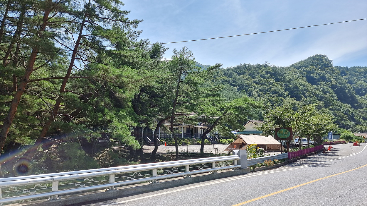 펜션들이 계속해서 있다, 주천강이 있어니 많은 사람들이 몰리는 곳인가 보다