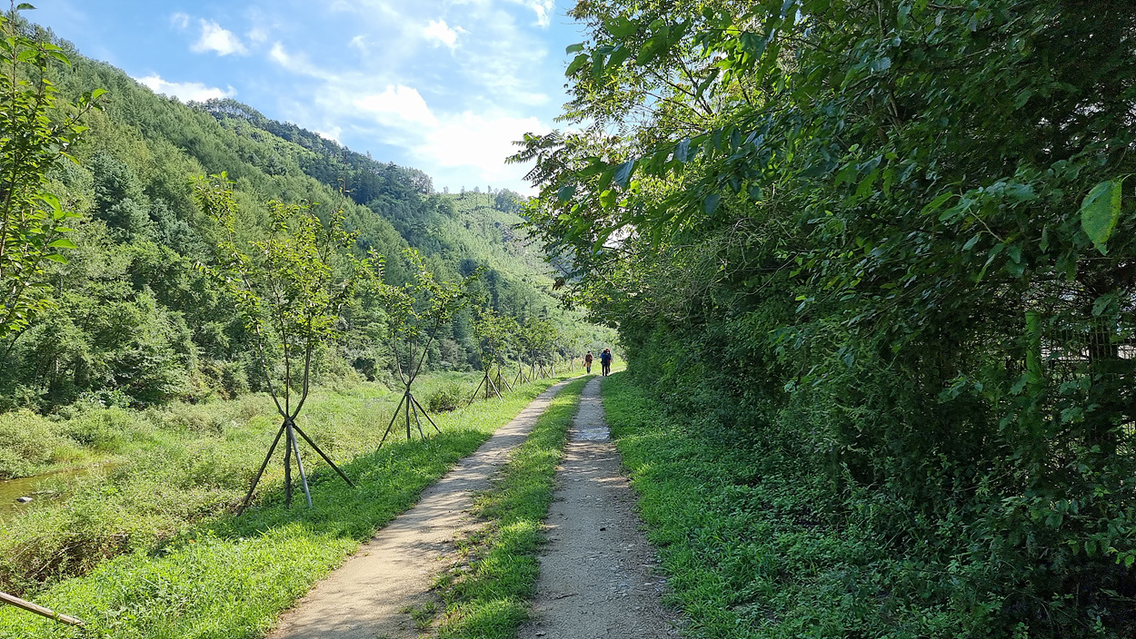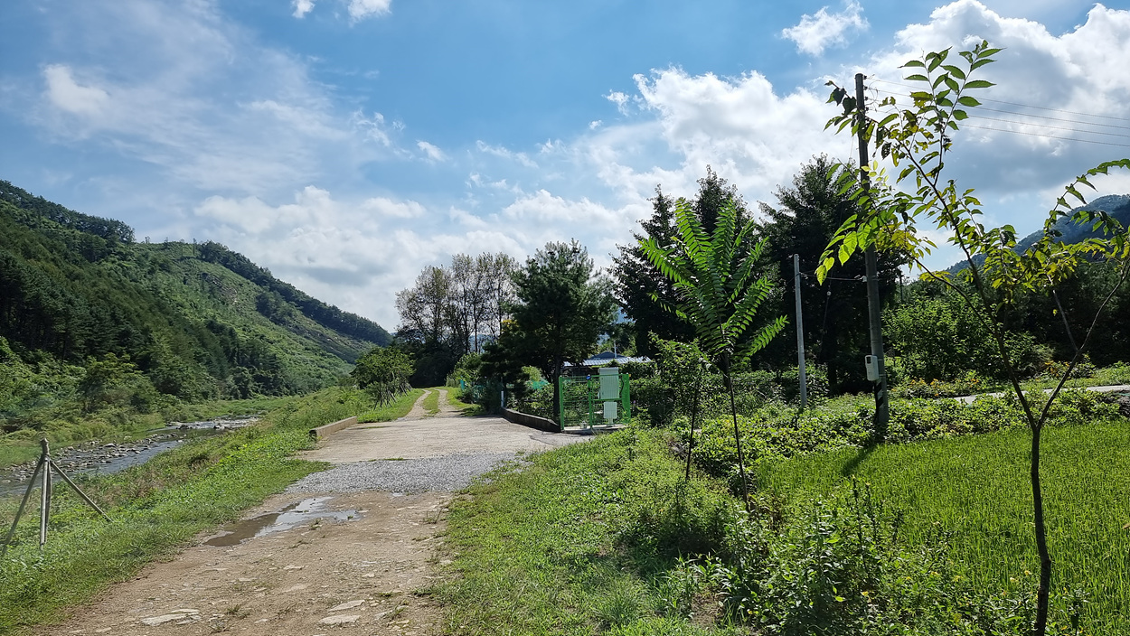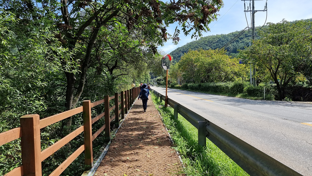 송계교에서 이곳까지 약 1,8km에는 도로폭이 좁아서 인도를