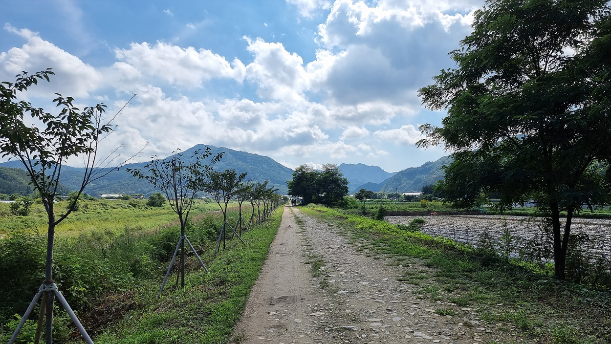 주천강변과 황둔천 둑방길 5km정도는 아주 재미없는 길이다,